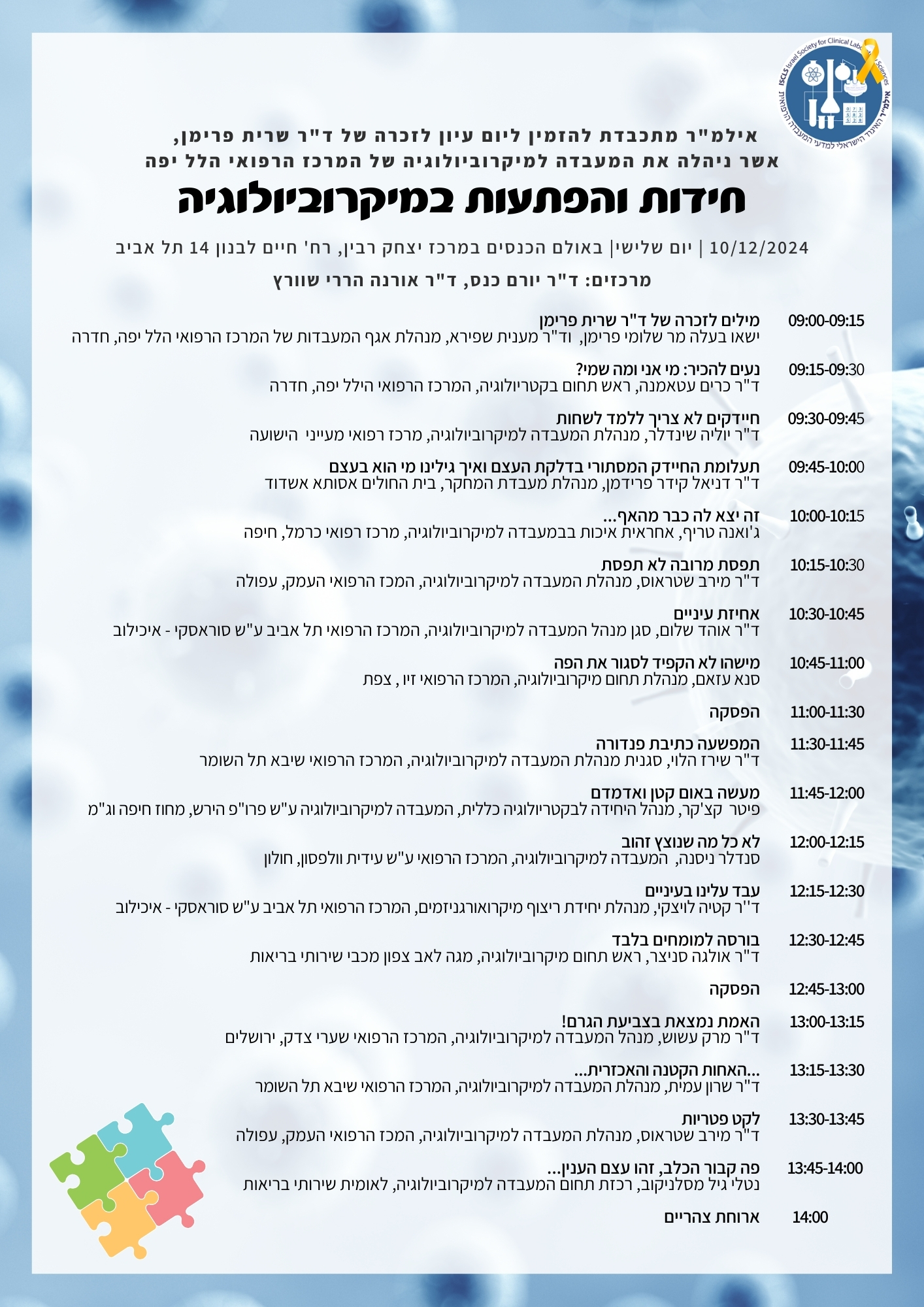 ראשי » אירוע » חידות והפתעות במיקרוביולוגיה | לזכרה של ד"ר שרית פרימן ז"ל | 10/12/24