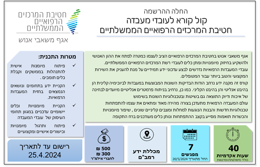 ראשי » משולחן האגוד » קול קורא לעובדי מעבדה – חטיבת המרכזים הרפואיים הממשלתיים קול קורא לעובדי מעבדה – חטיבת המרכזים הרפואיים הממשלתיים תאריך: 01/04/2024 לקול הקורא ולכל הפרטים סילבוס – ביוכימיה קלינית במעבדות רפואיות